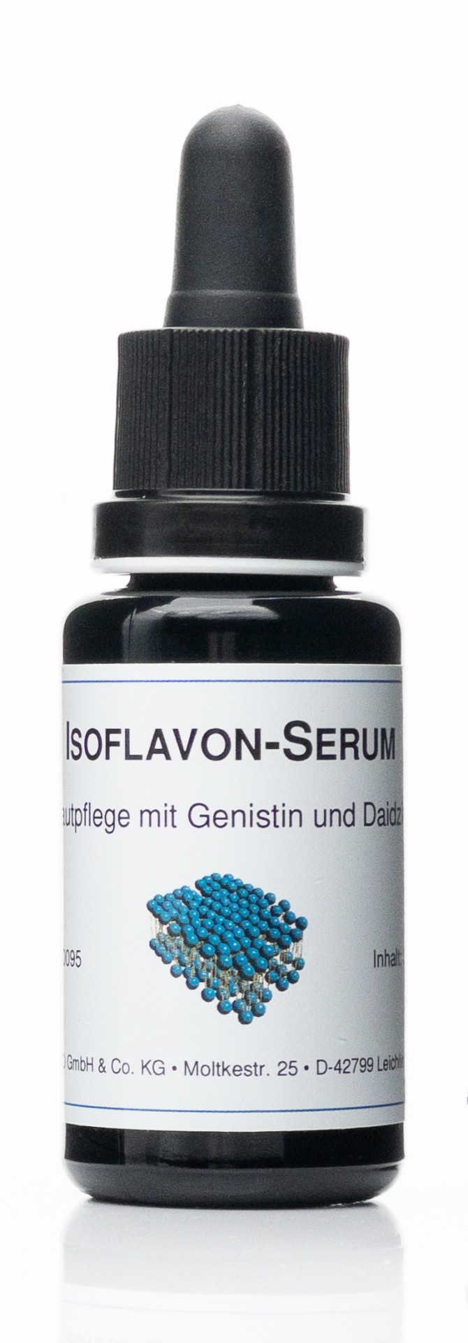 Les isoflavones génistéine et daidzéine contribuent à rééquilibrer une carence locale en oestrogènes et sont utilisées en cosmétique pour la prévention de problèmes cutanées d'origine hormonale. La synthèse du collagène et la régénération cellulaire sont stimulées, et la perte de collagène est freinée. L'activité accrue des glandes sébacées provoquée par la téstostérone est en outre normalisée.