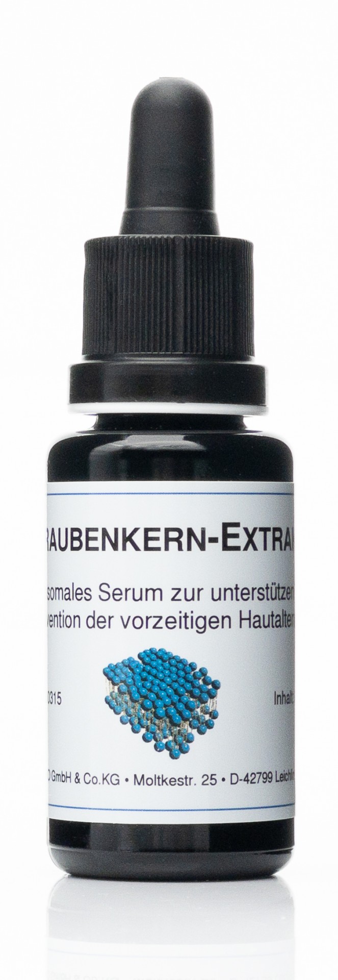 Le produit possède de fortes propriétés antioxydantes et contribue ainsi à la protection de la peau contre les radicaux porteurs d'oxygène. La phosphatidylcholine contenue dans les liposomes protège en outre les cellules et agit ainsi de manière synergique. Pour une application cornéothérapeuthique, l'extrait liposomal peut être combiné à l'huile de pépins de raisin.